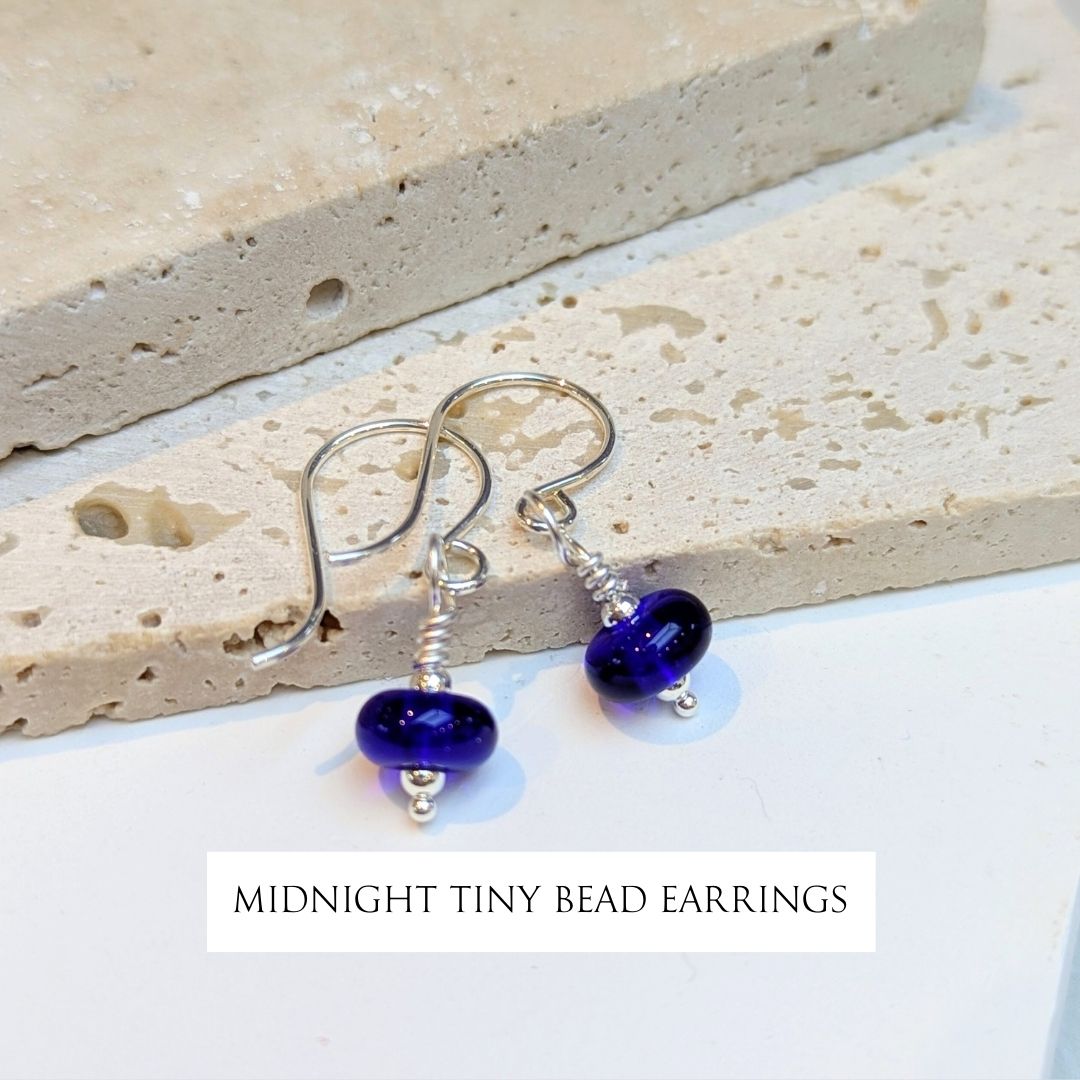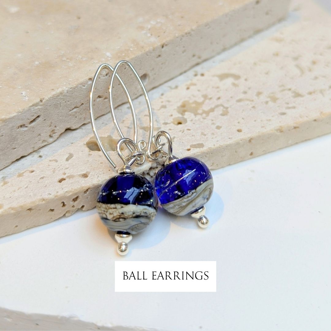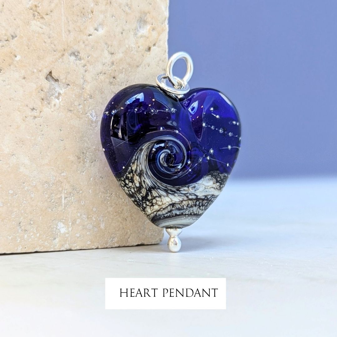 Each bead is handmade in deep cobalt glass, scattered with tiny stars of fine silver and finished with a golden touch of beach around the base. A design to remind you of those unforgettable summer nights by the sea, or maybe to inspire your bucket list.