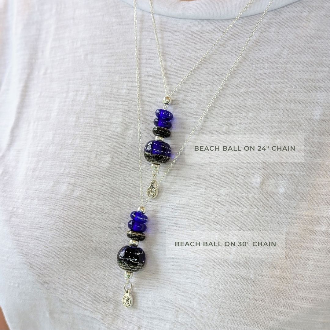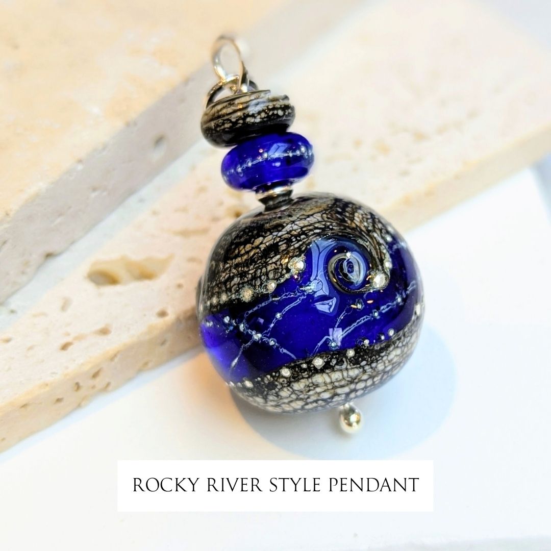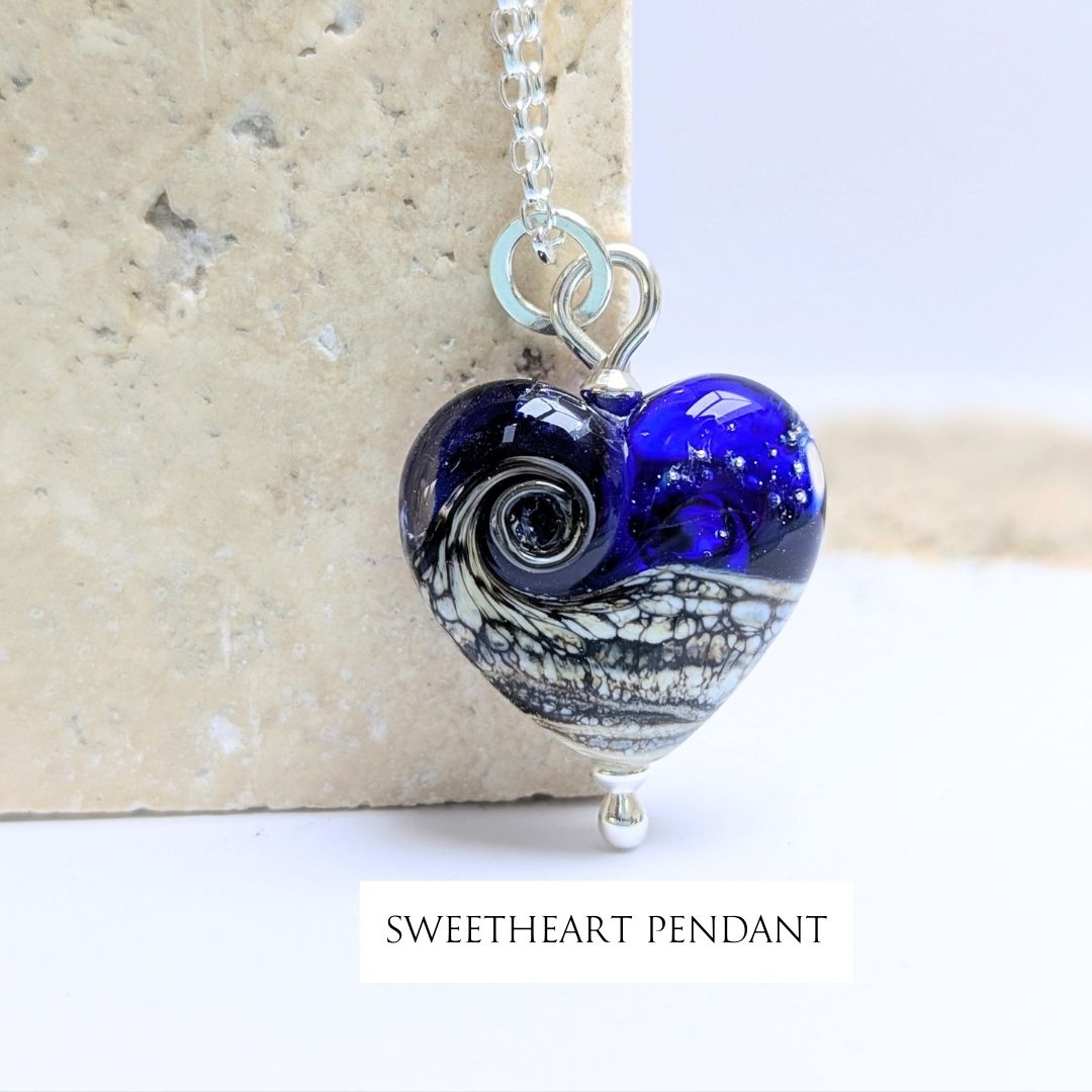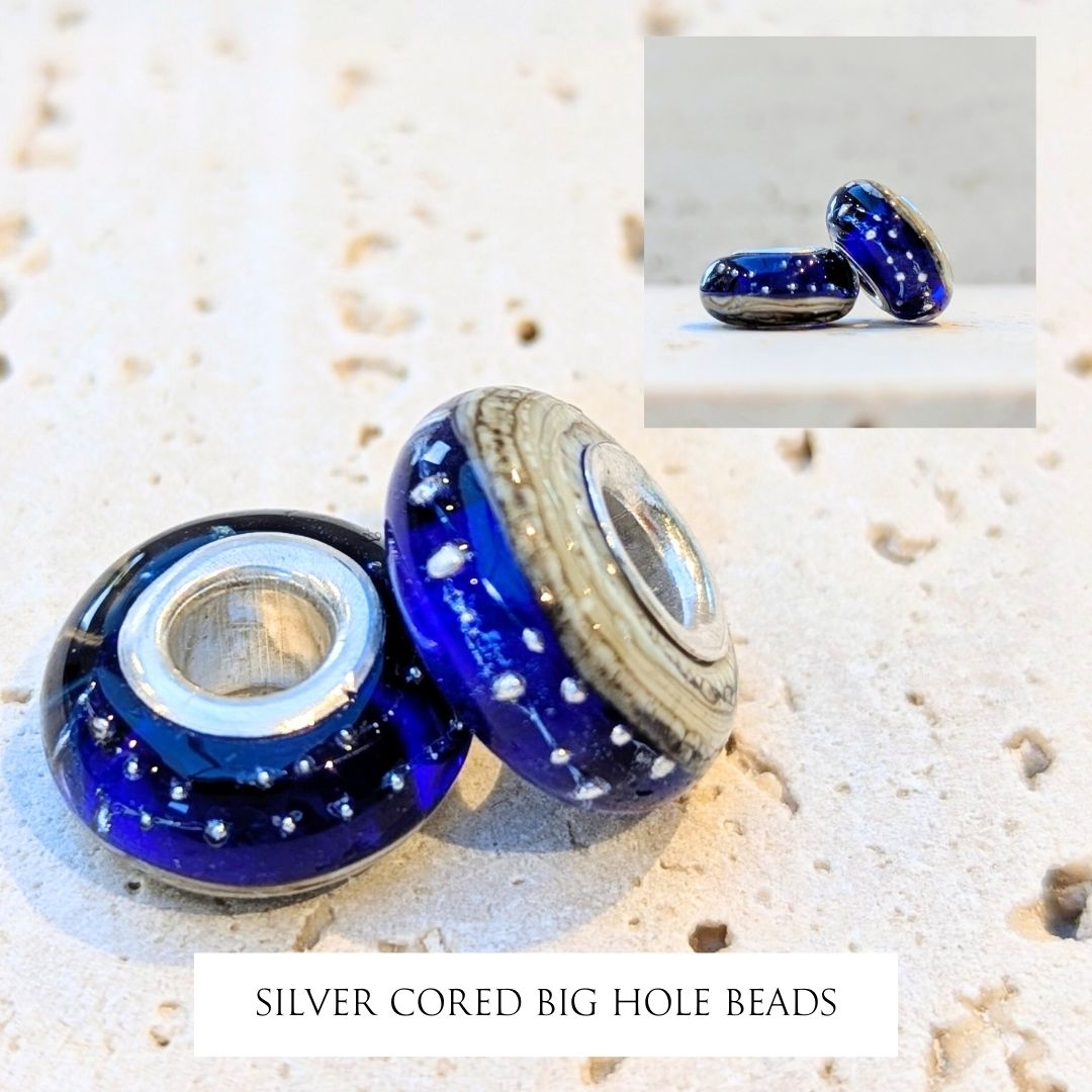 Each bead is handmade in deep cobalt glass, scattered with tiny stars of fine silver and finished with a golden touch of beach around the base. A design to remind you of those unforgettable summer nights by the sea, or maybe to inspire your bucket list.