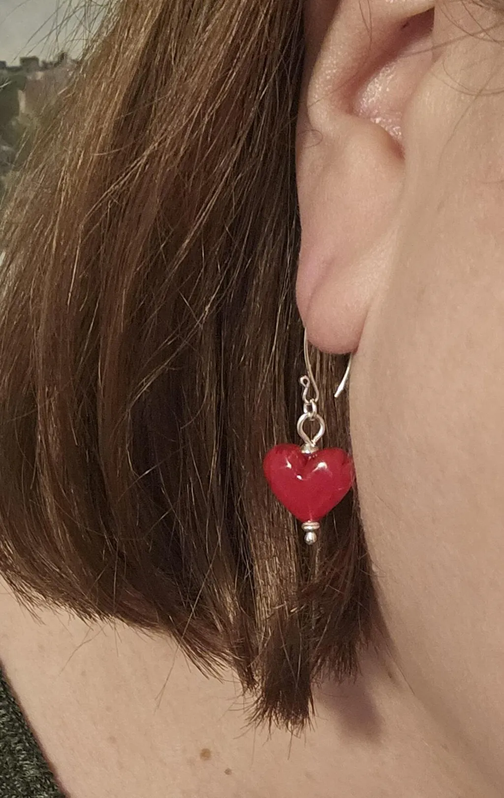 16 mm heart bead earrings with handmade sterling silver earwires. Please add a note at checkout if you would prefer posts instead of wires.